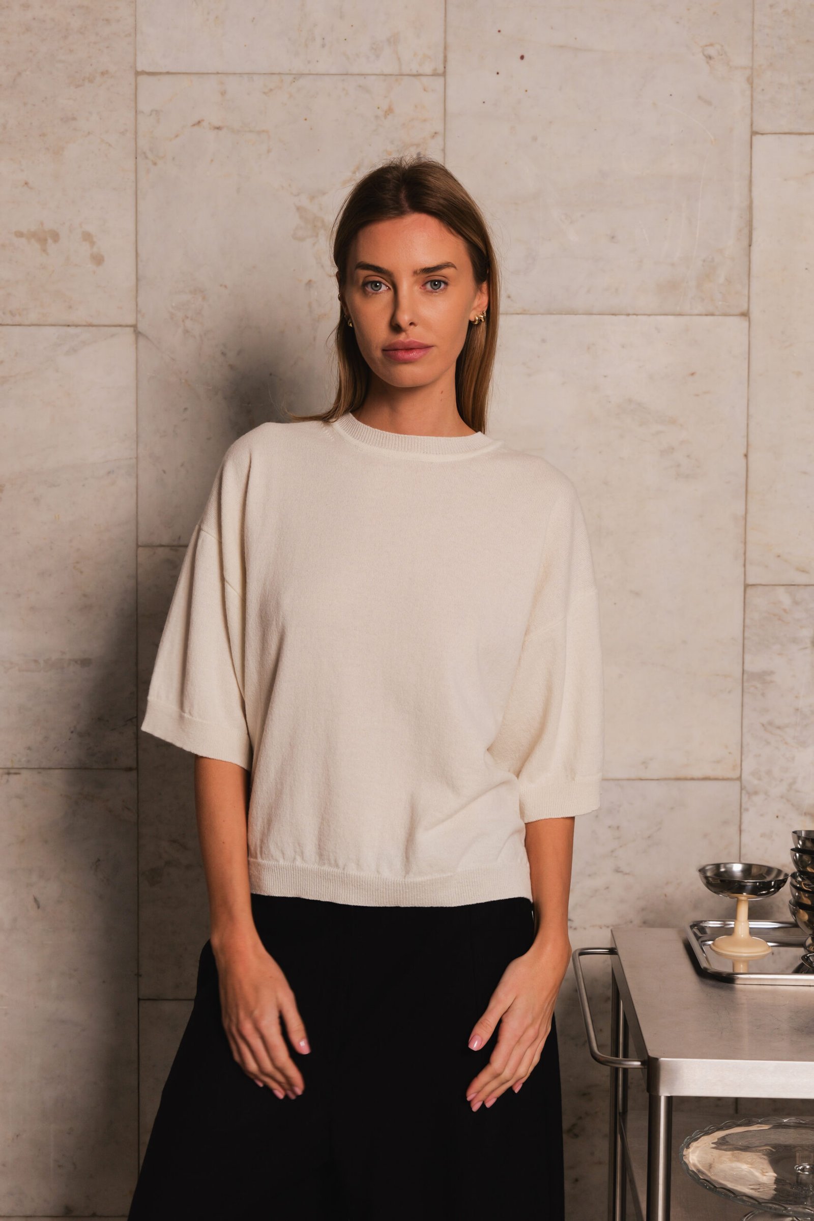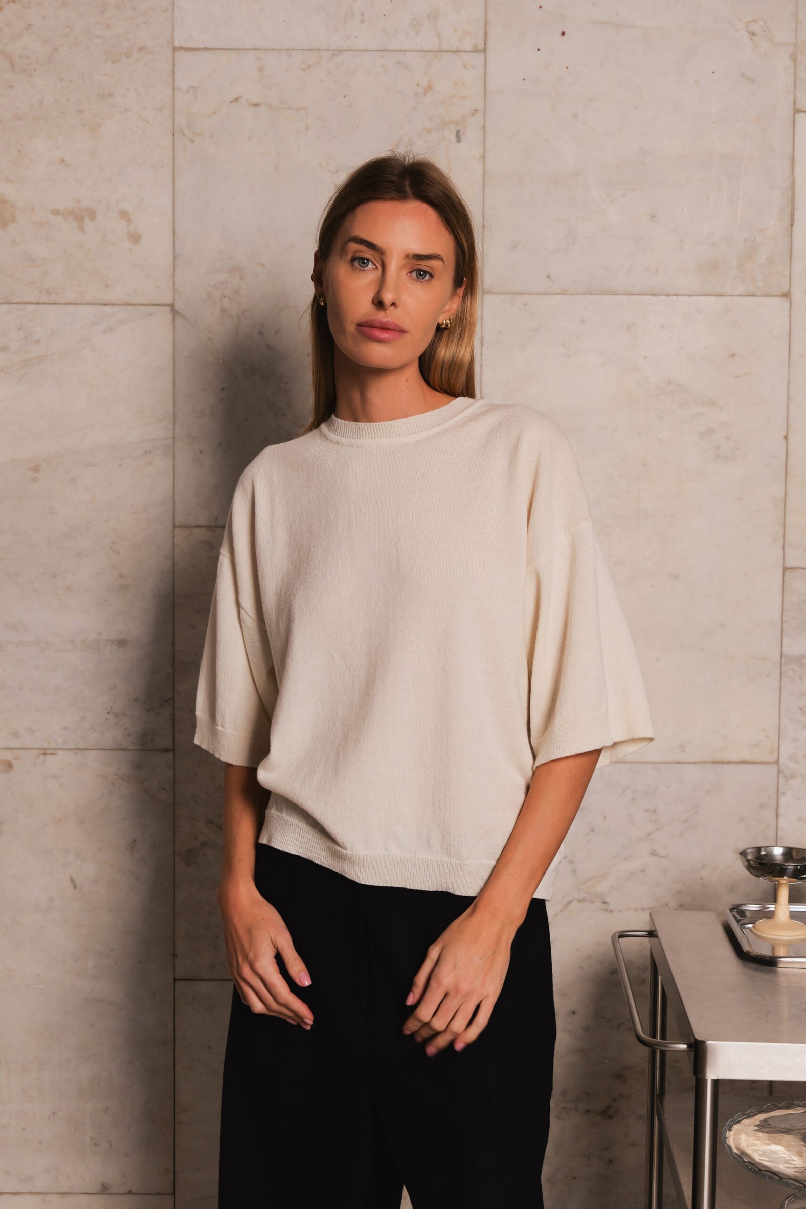 loose boxy fit lightweight knit t-shirt