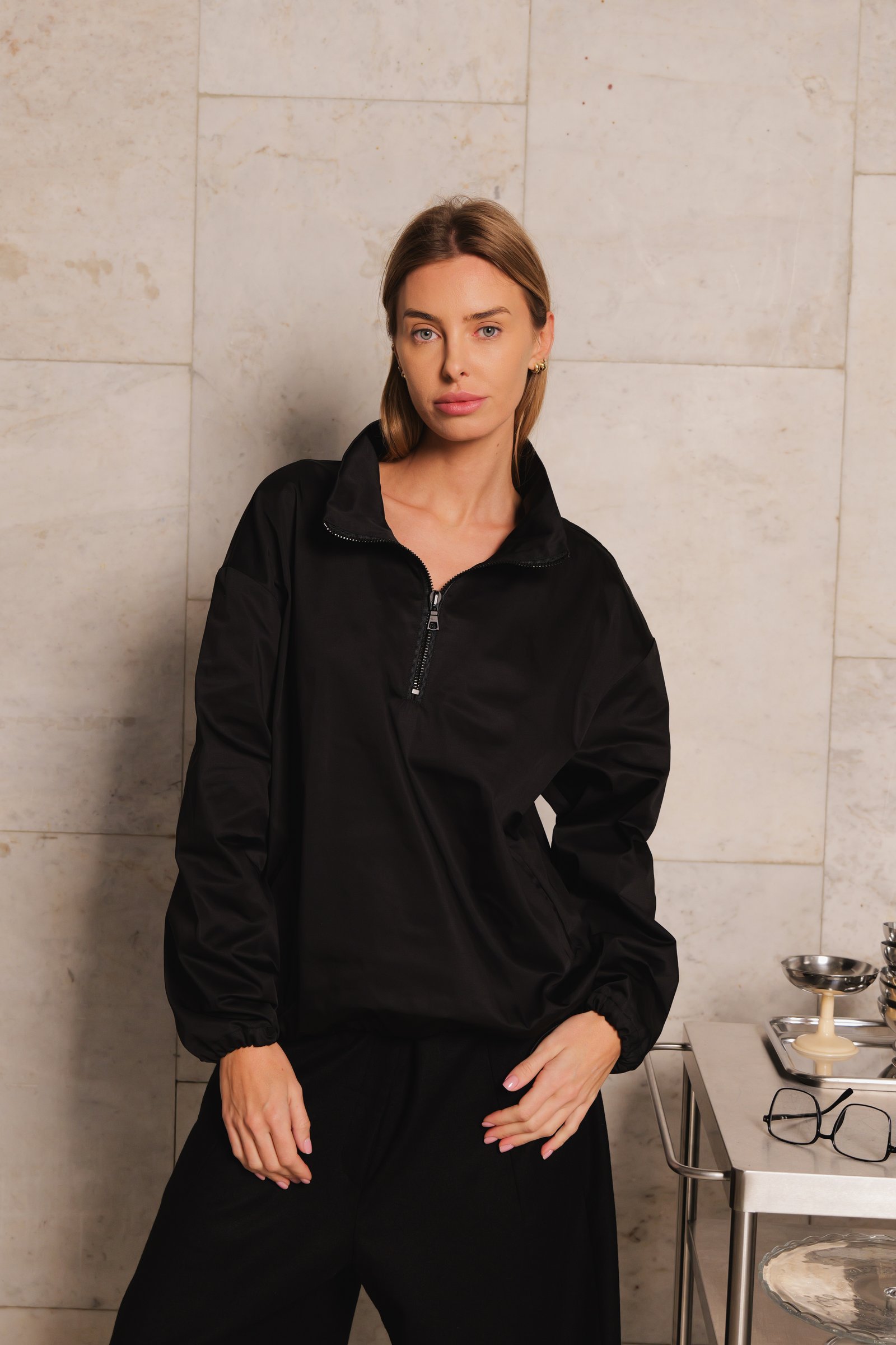 hip length, bottom and sleeve ends with elastic, frot pockets