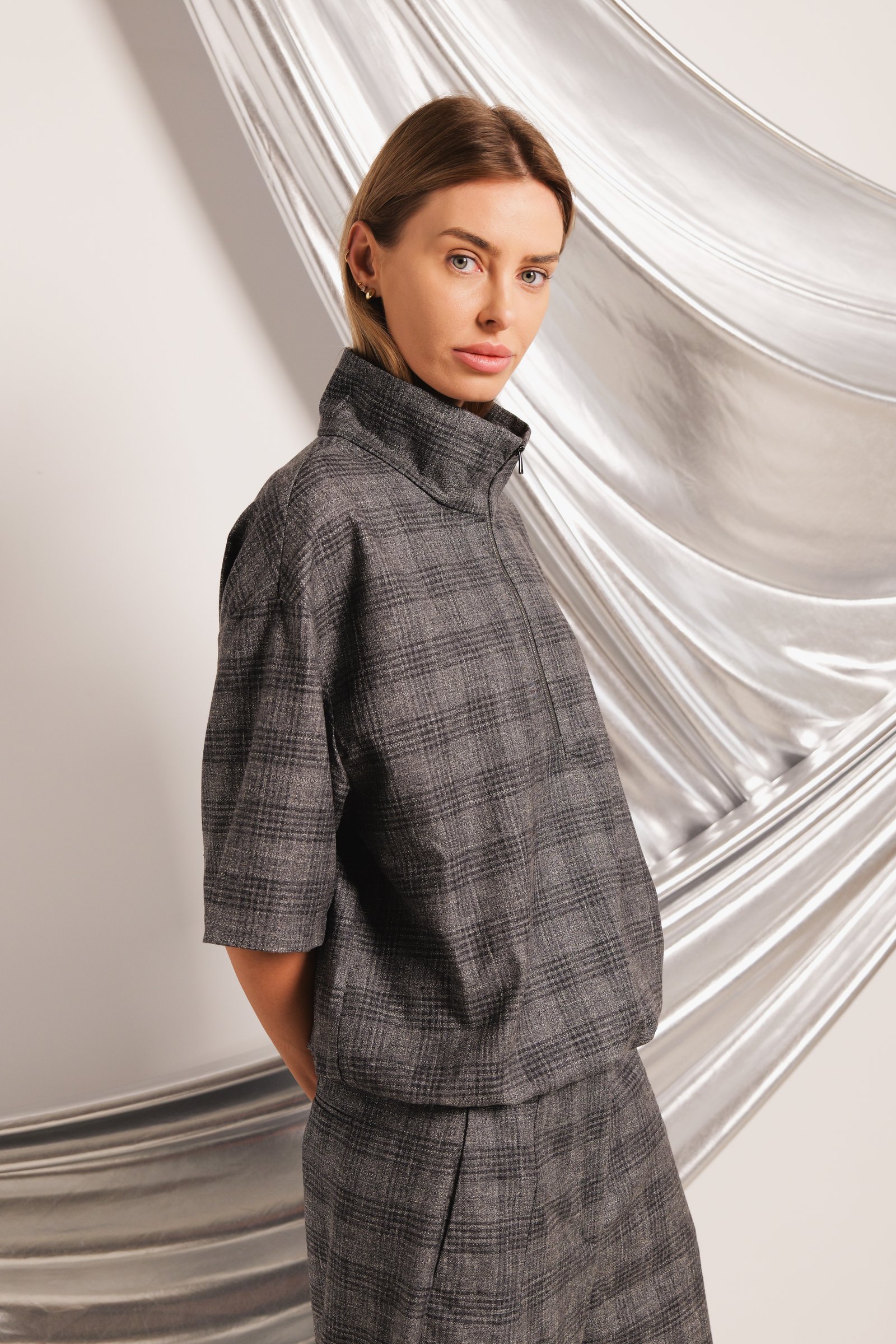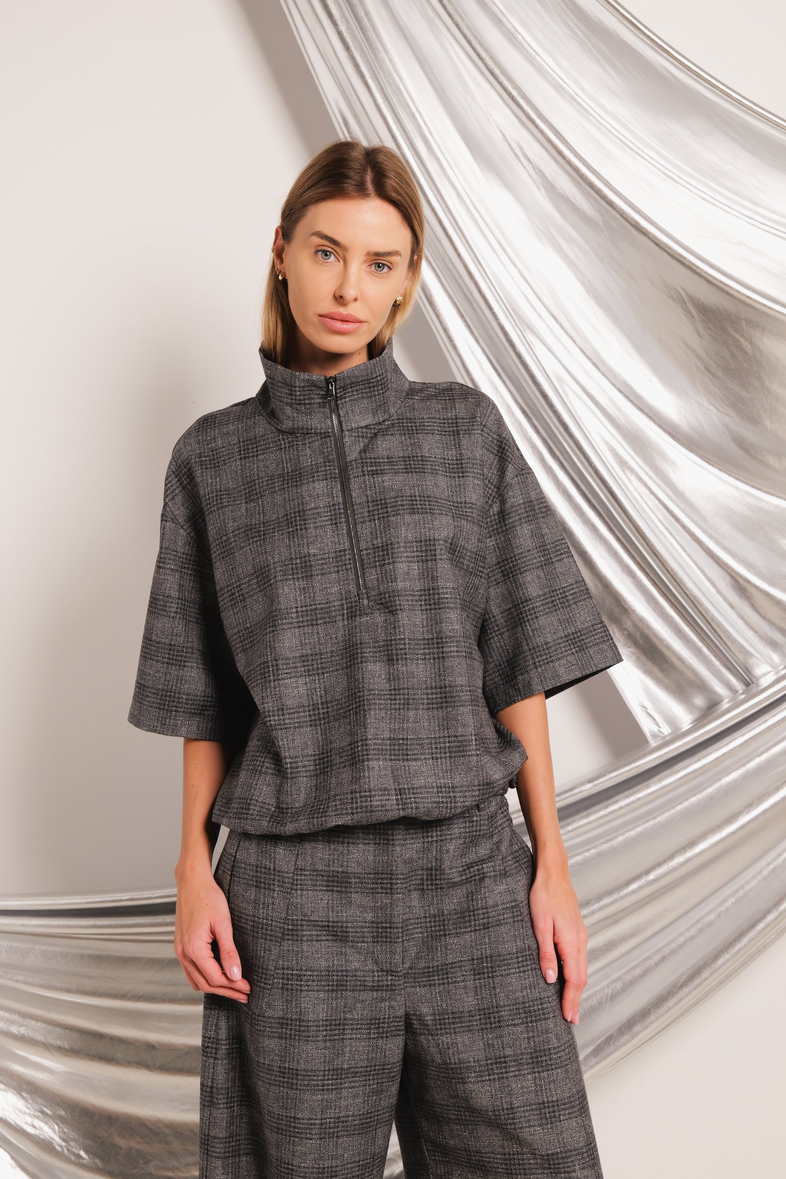 half legth zipper fastening front with mock neck