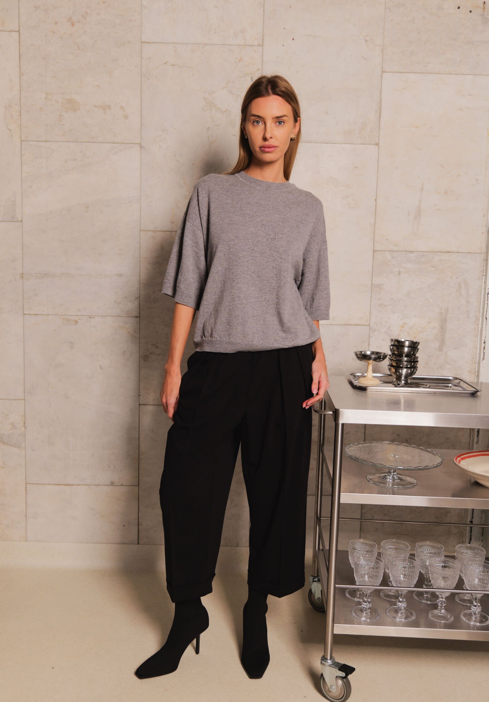 loose fit cropped trousers