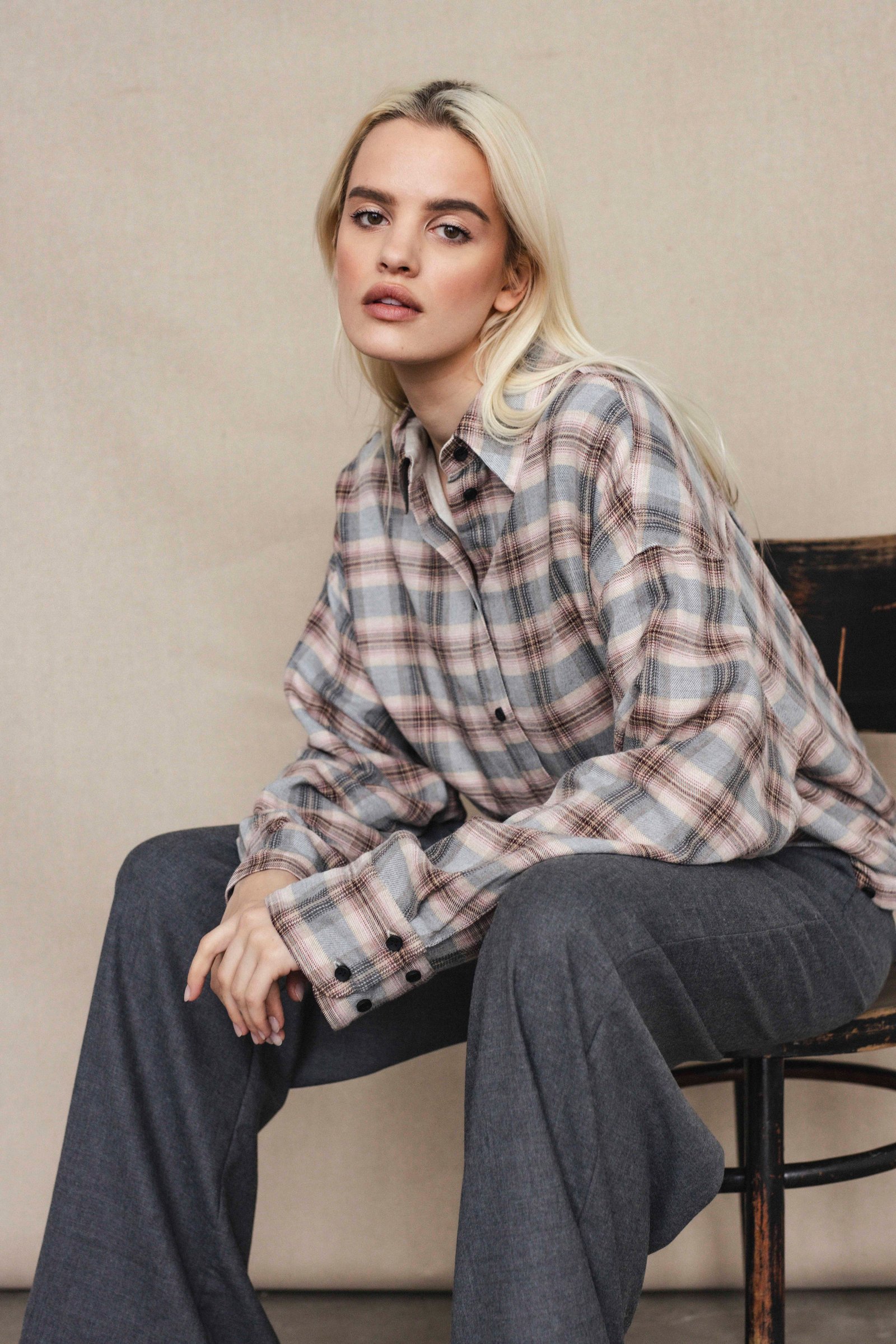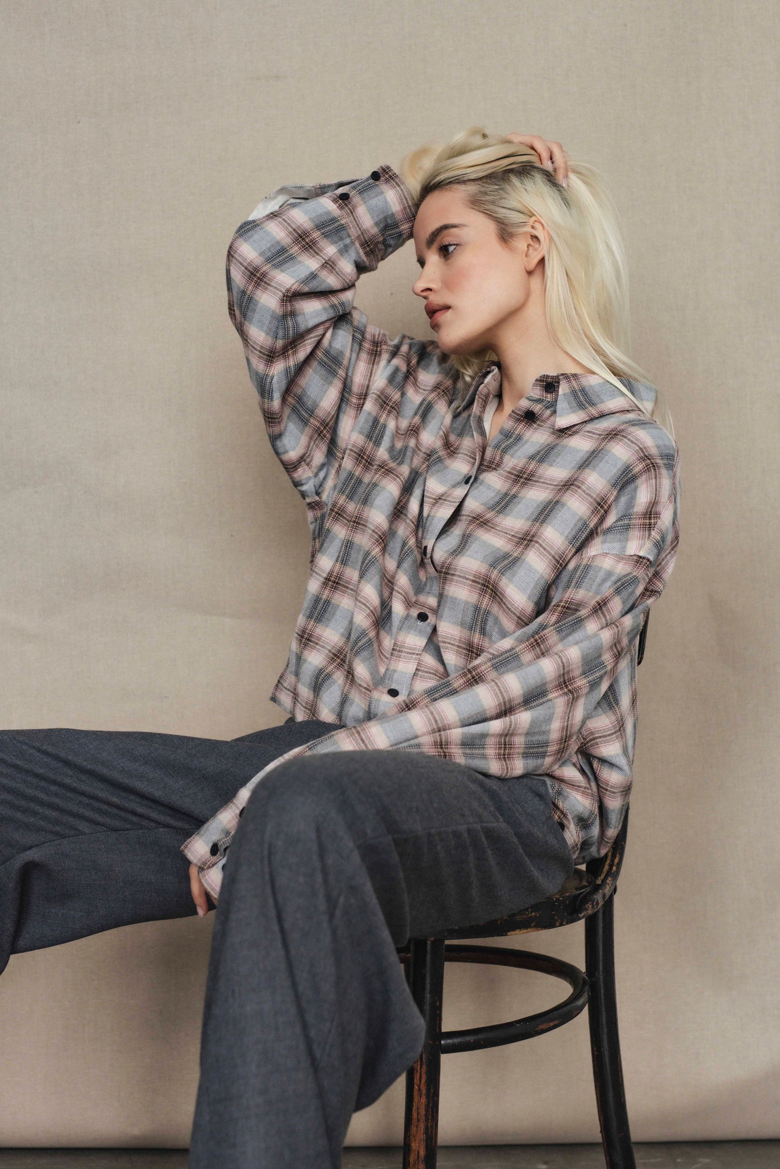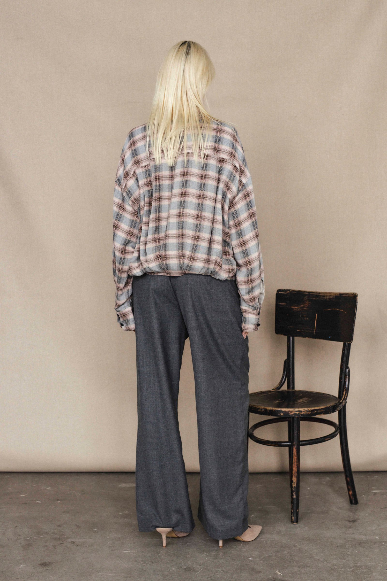 one size plaid shirt oversize fit, with lining, baloon style back with pleats