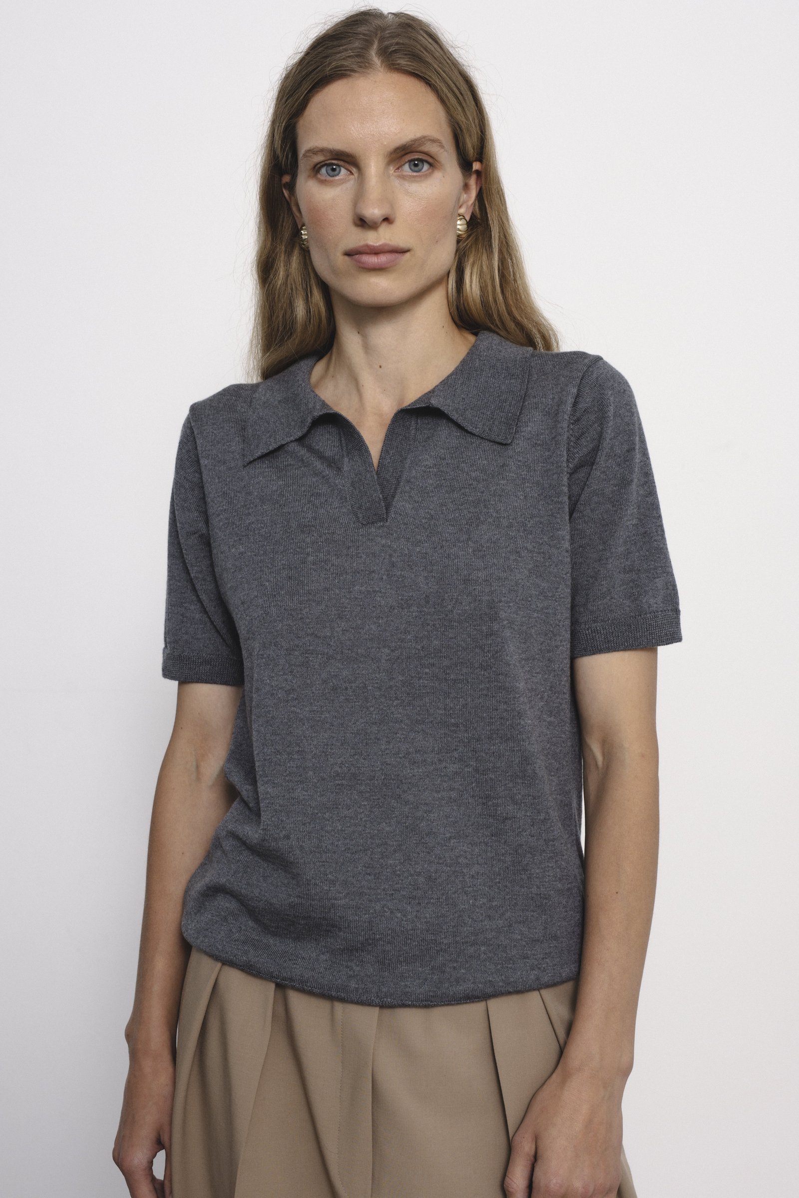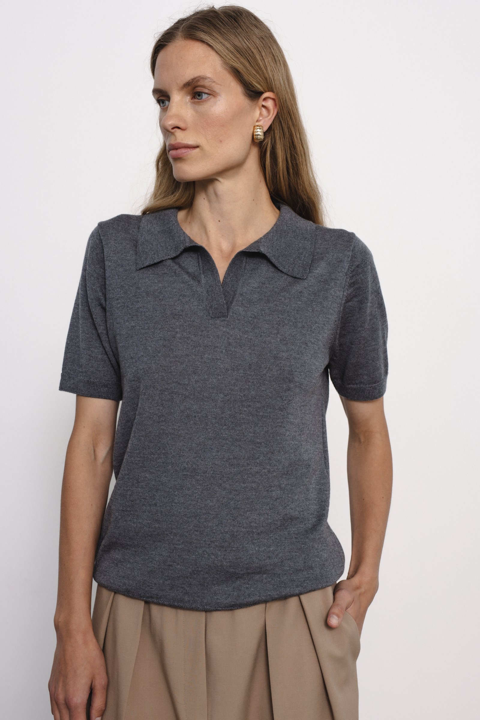regular fit / short sleeve / hip length / polo neck