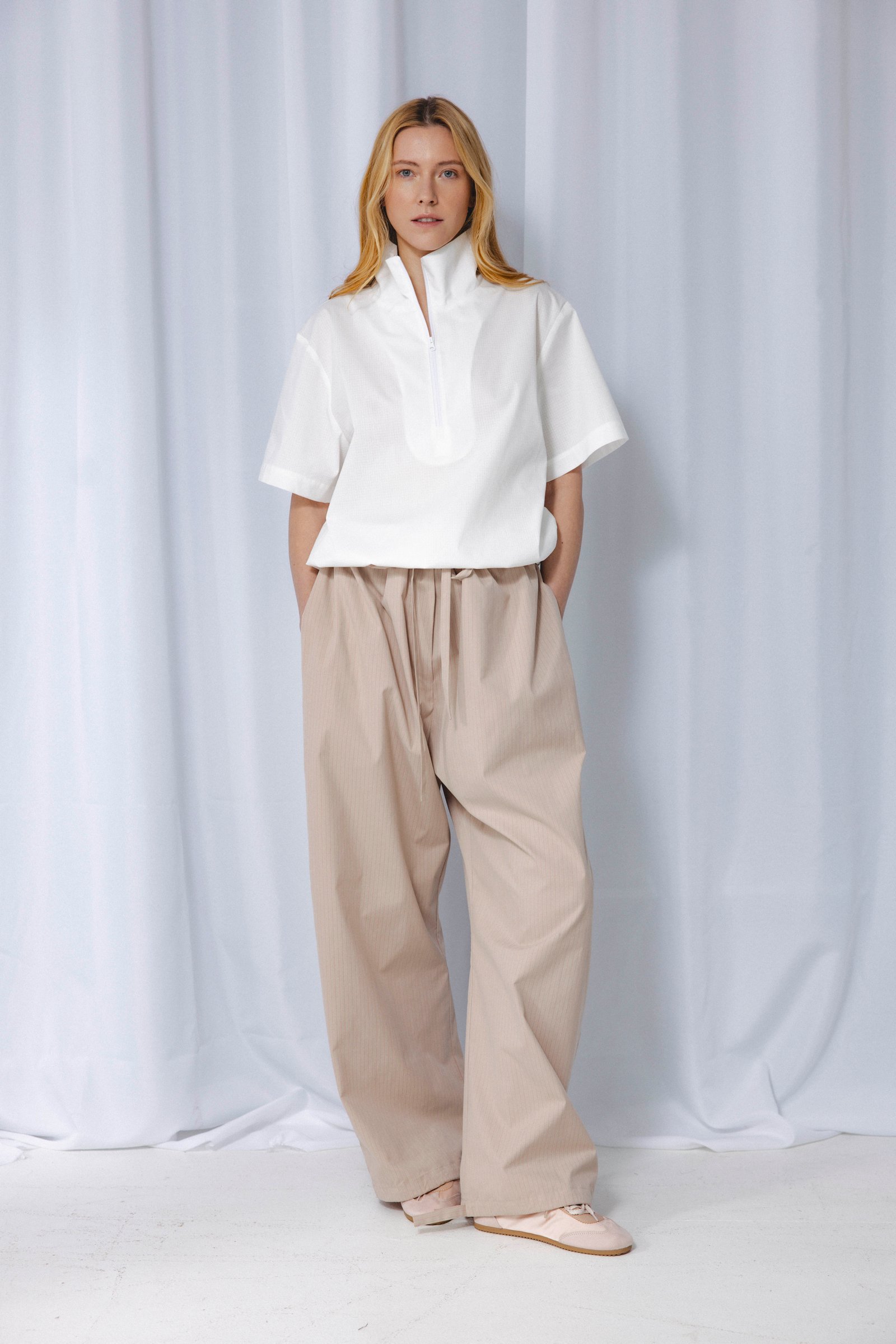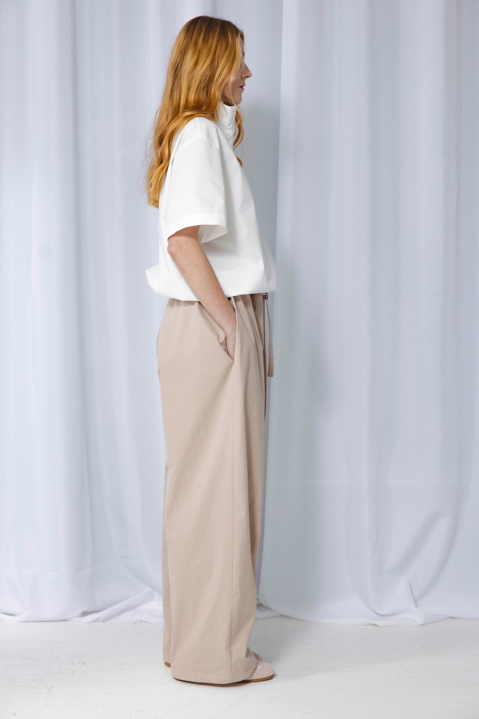 waistband and bottoms with drawstrings with side pockets