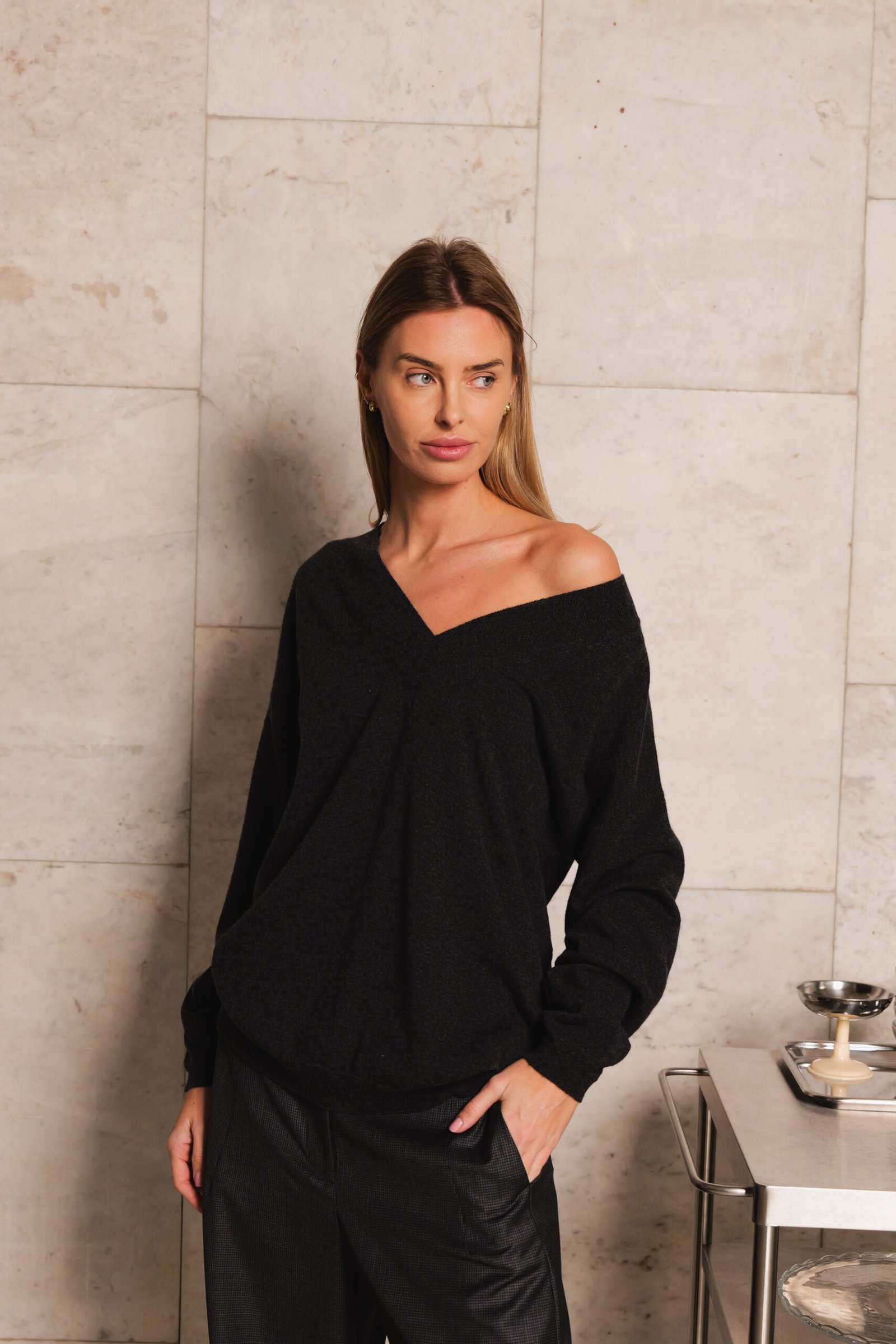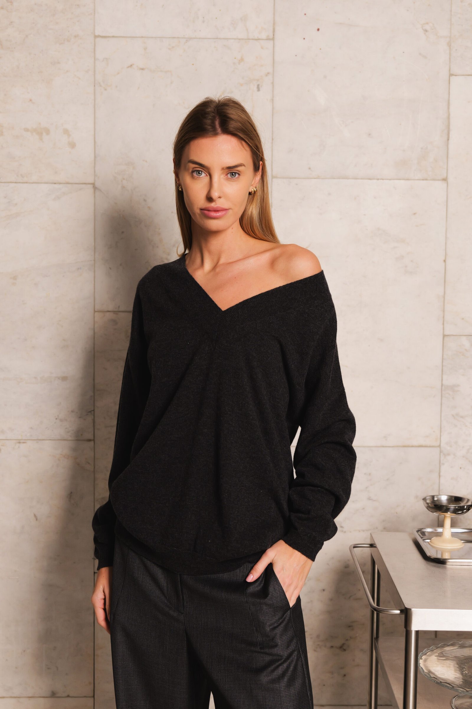 loose oversize fit / long sleeve / hip length / deep v- neck