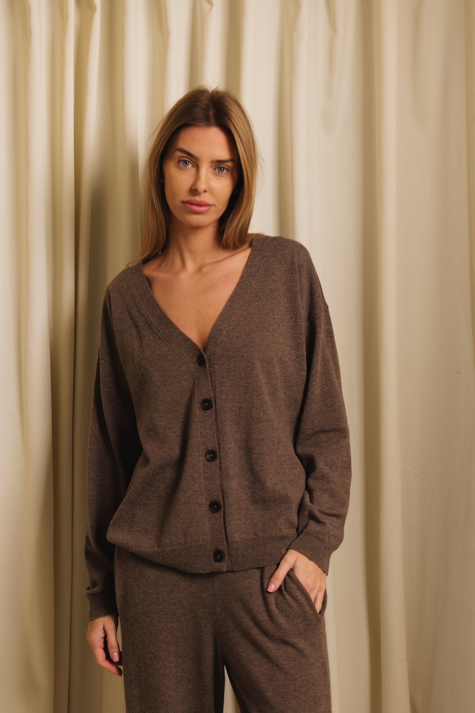 loose oversize fit / long sleeve / hip length / deep v- neck / button fastening