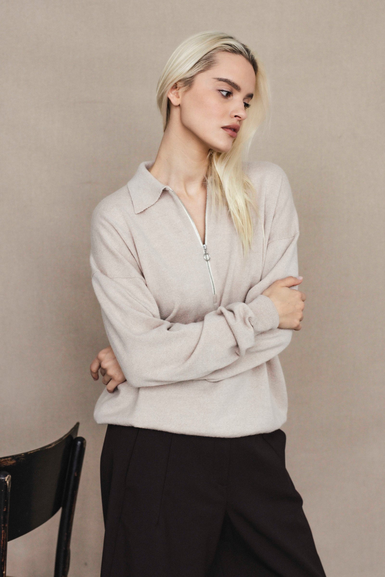 loose oversize fit / long sleeve / hip length / quarter zip