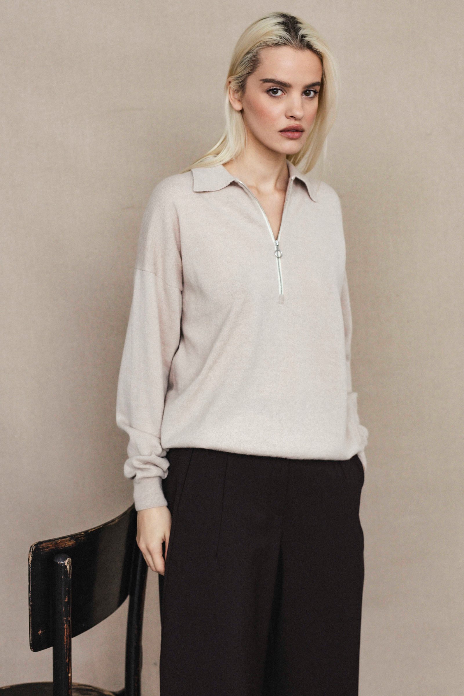 lightweight knit polo zip neck sweater