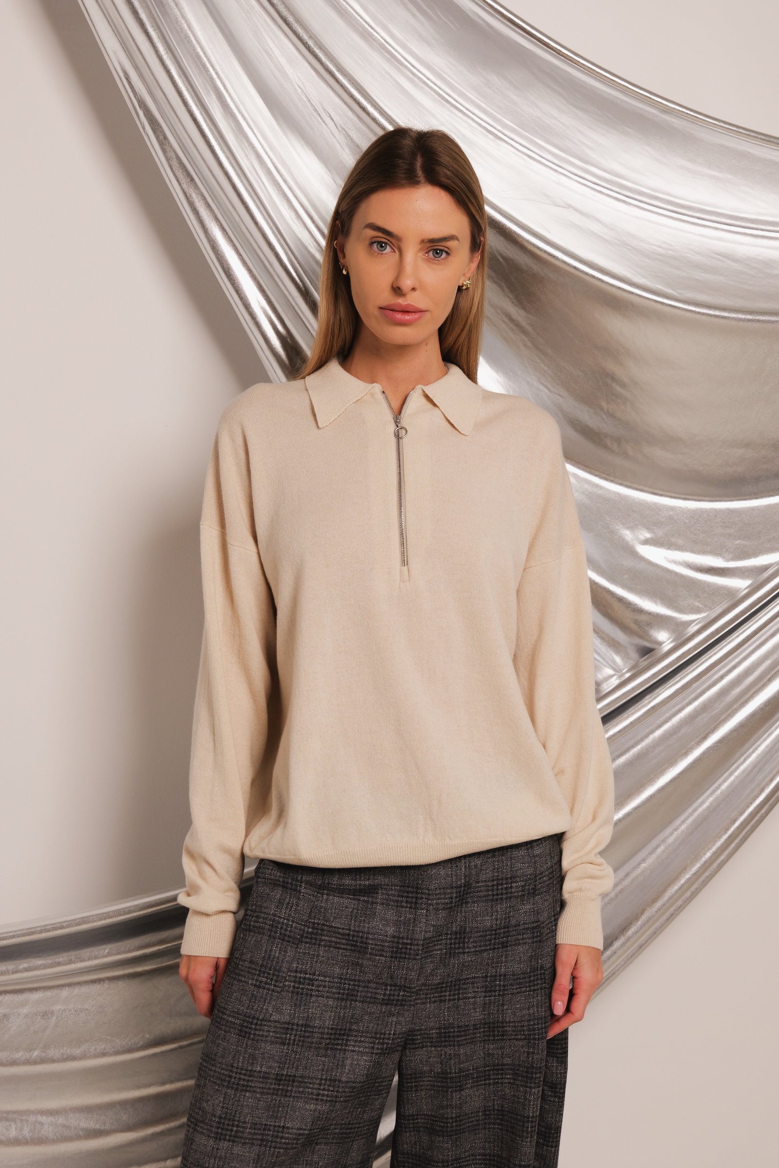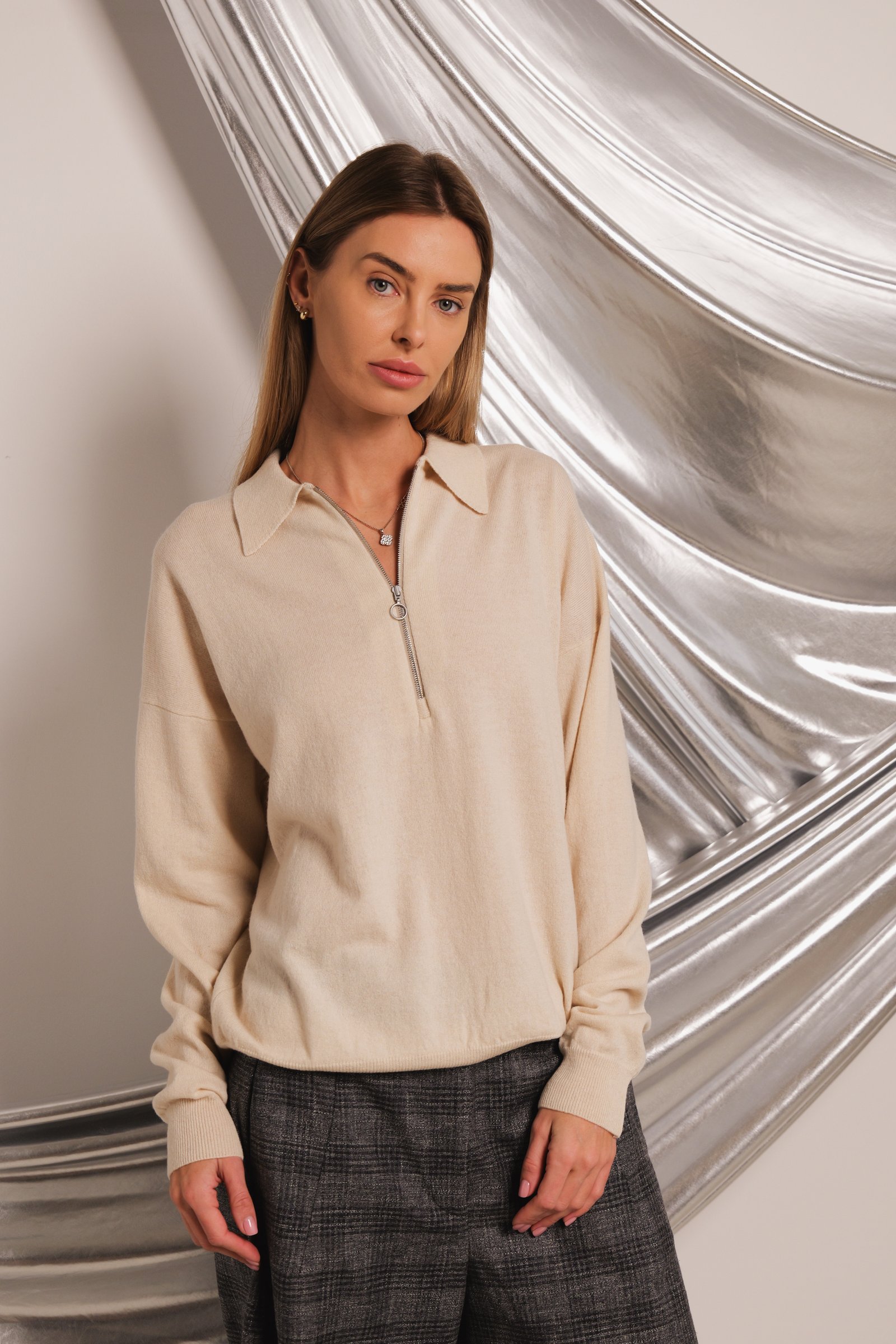 loose oversize fit / long sleeve / hip length / quarter zip