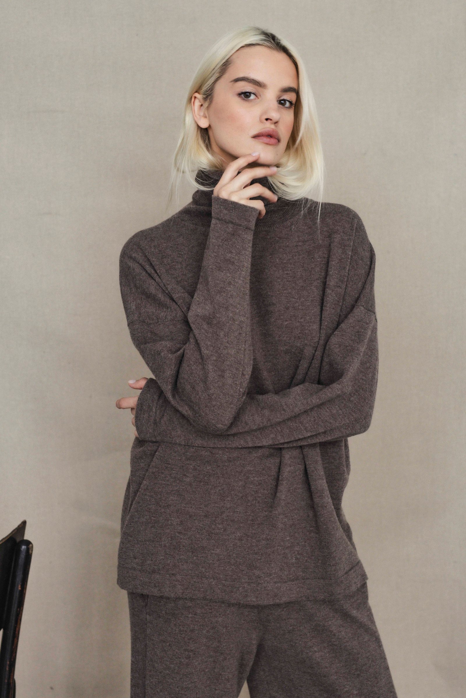 loose oversize fit / long sleeve/ hip length loose bottom /roll neck